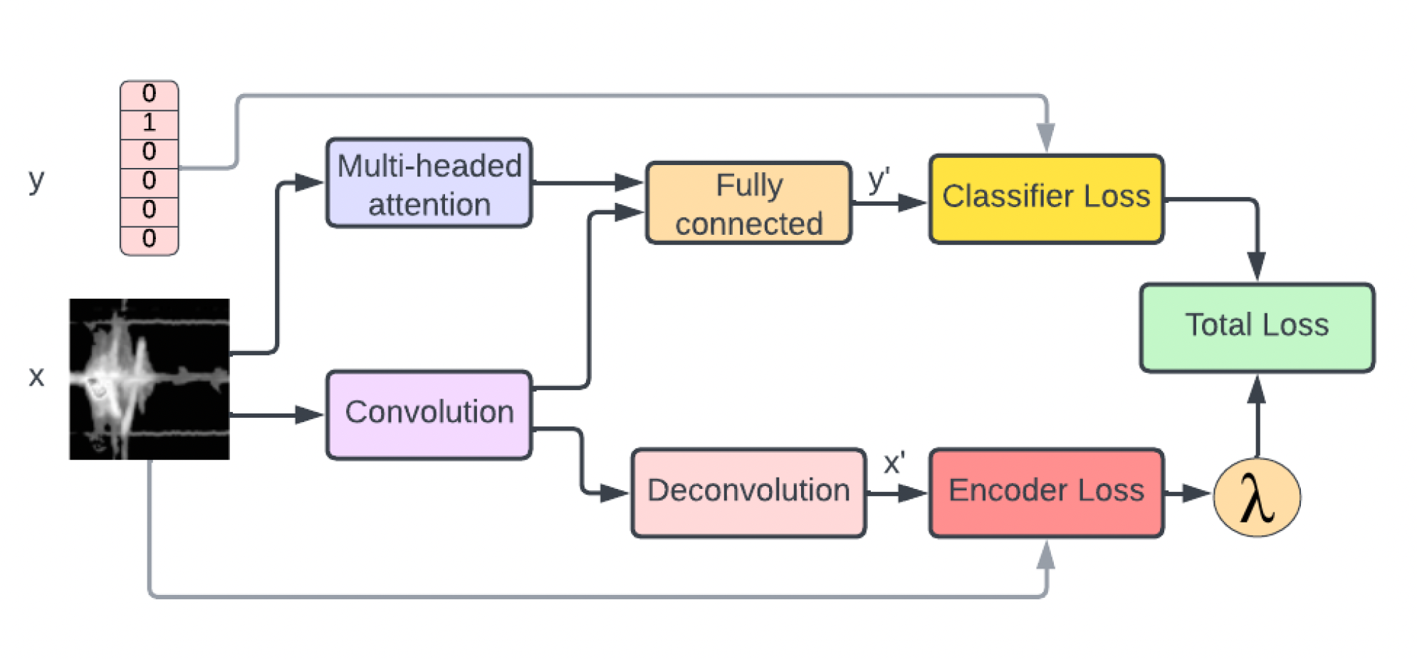 In contrast to the conventional two-step training, where the encoder is first pre-trained and then frozen, our joint training approach updates all components together using a combined reconstruction-plus-classification loss.
