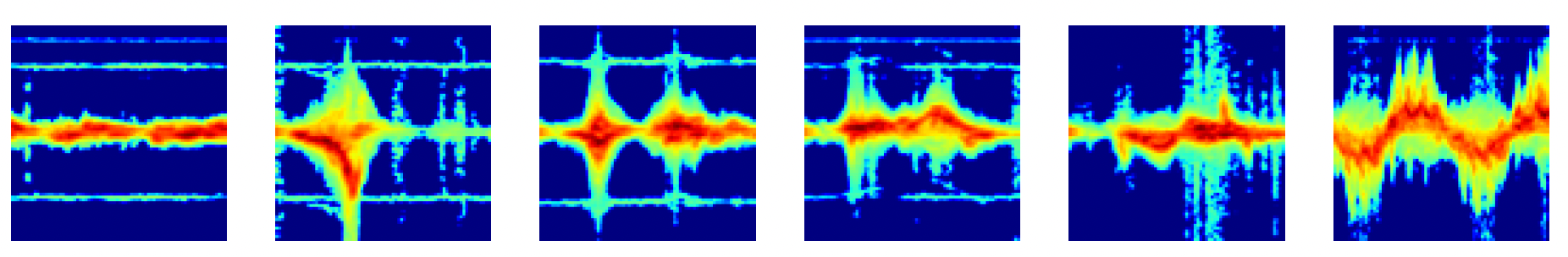 A total of 570 micro-Doppler spectrograms (95 per activity) from 33 subjects were analyzed after cropping and normalization (76 × 76 pixels, grayscale 0-255).